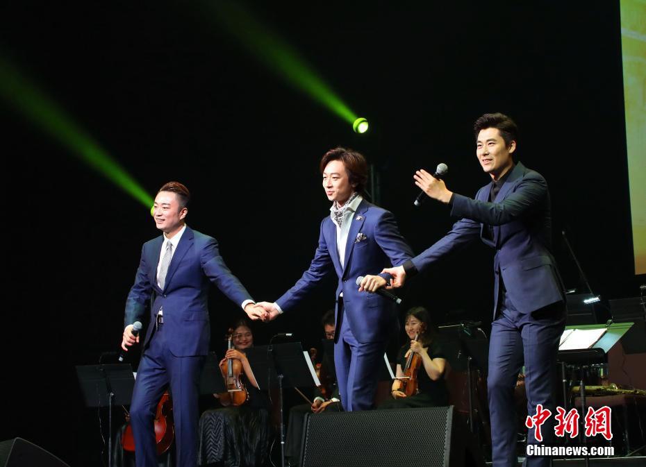 6月18日晚,被誉为“东方夜莺”的上海音乐学院教授杨学进在悉尼星港城举办上海老歌独唱音乐会。图为参加演出的“力量之声”组合在演出中。中新社发 姜长庚 摄