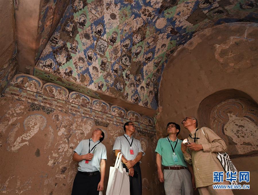 7月18日,参观者在新疆克孜尔石窟立体仿真洞窟内欣赏复原的壁画。 当日,在新疆龟兹研究院等单位的共同努力下,流失海外的百余幅新疆克孜尔石窟壁画及洞窟复原影像在北京展出。此次展览还搭建还原了两个立体仿真洞窟,为观众提供较为完整的洞窟及壁画原貌的观赏体验。 克孜尔石窟位于新疆维吾尔自治区拜城县,始凿于公元3世纪,是我国开凿最早的大型石窟群之一。 新华社记者 李贺 摄