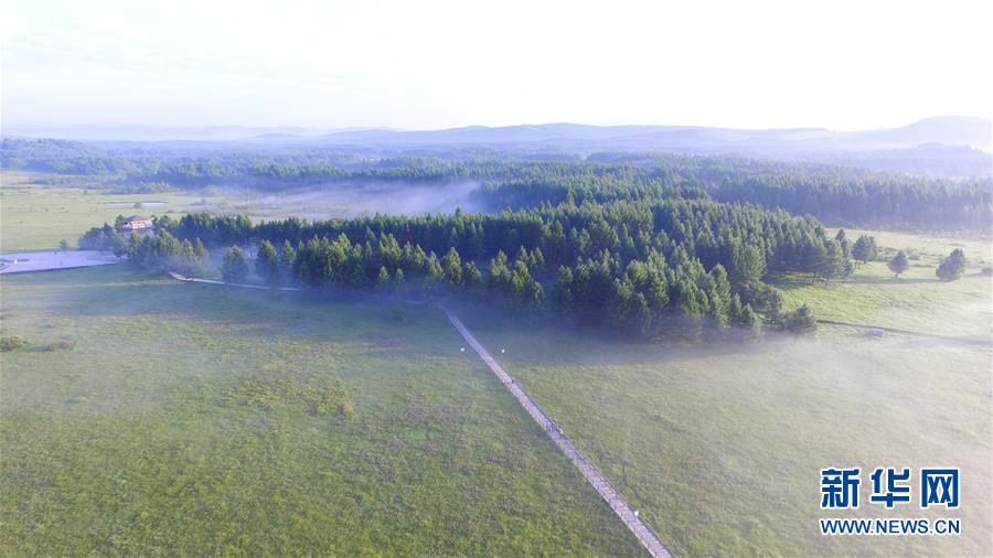 这是7月28日拍摄的塞罕坝国家森林公园晨景(无人机拍摄)。新华社发(刘满仓 摄)