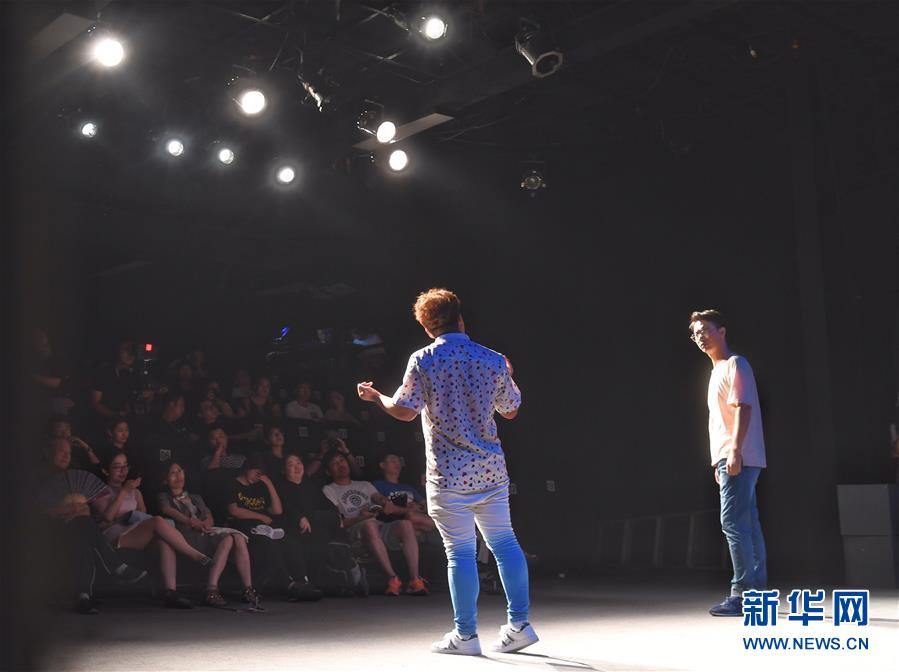 8月4日,在北京9剧场,呼伦贝尔学院“原上鹰”话剧社表演话剧《根在草原》。 新华社记者金良快摄