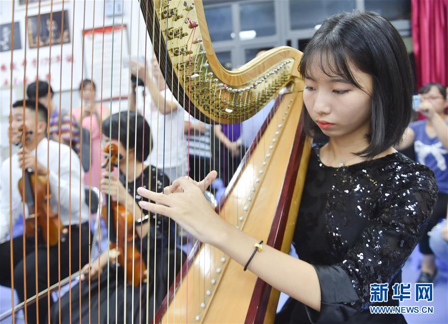 8月23日晚,在福建省福州市,小茉莉交响乐团成员在暑期集训上演奏。新华社记者宋为伟摄