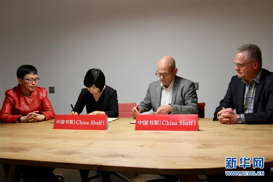 10月9日,在德国法兰克福,中国图书进出口(集团)总公司(中图公司)副总经理林丽颖(左二)与塔利亚连锁书店首席执行官米夏埃尔·布施(右二)签署有关“中国书架”的合作协议。“中国书架”项目落户德语区最大连锁书店的签约仪式9日在德国法兰克福举行。这一项目由中图公司与塔利亚连锁书店合作,将落户德国柏林、汉堡、明斯特、曼海姆、德累斯顿以及奥地利维也纳这6座城市的16家塔利亚书店。首批书架计划于2019年3月正式推出。 新华社记者 沈忠浩 摄