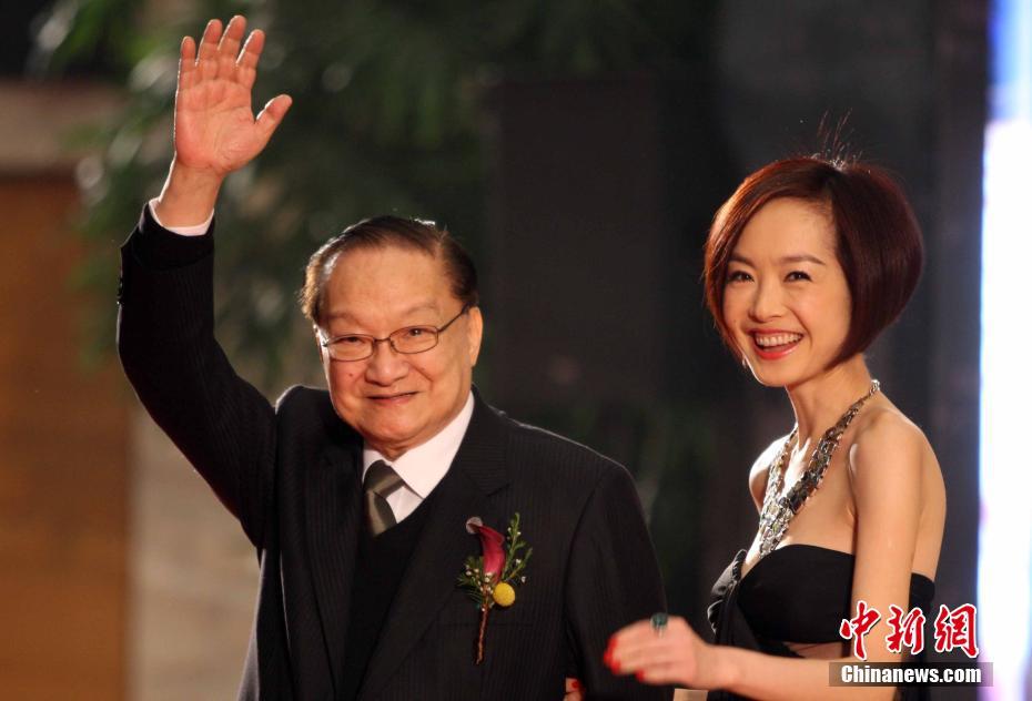 2009年3月28日晚,“世界因你而美丽——2008影响世界华人盛典”在北京大学百年讲堂举行,十余位2008年度最受瞩目的华人精英登台领奖。图为年过八旬的金庸先生荣获“影响世界华人终身成就奖”,并出席盛典。该活动由香港凤凰卫视发起,联合中国新闻社、北京青年报、明报等共同主办,自首届举办以来已成为华人世界重量级的年度盛事。中新社记者 张宇 摄