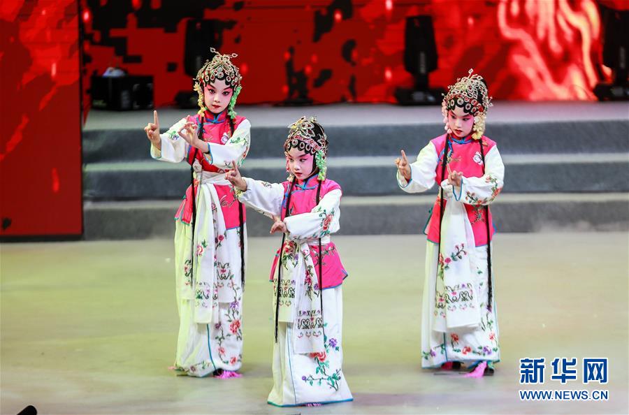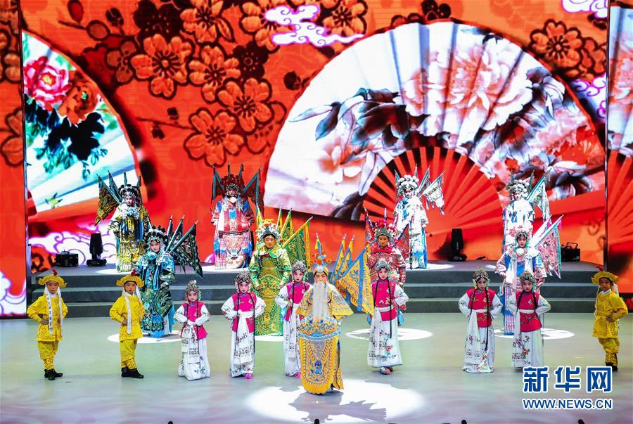 11月10日,东城区少年艺术团学生在表演京剧《梨园蓓蕾》。 新华社发(周良 摄)