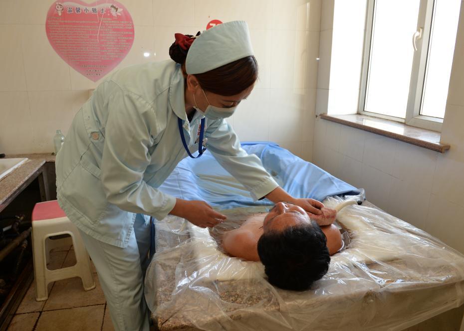 青海省藏医院的曼尧(药浴助理)正在进行药浴操作和护理。关确才让 摄 中国非物质文化遗产保护中心供图