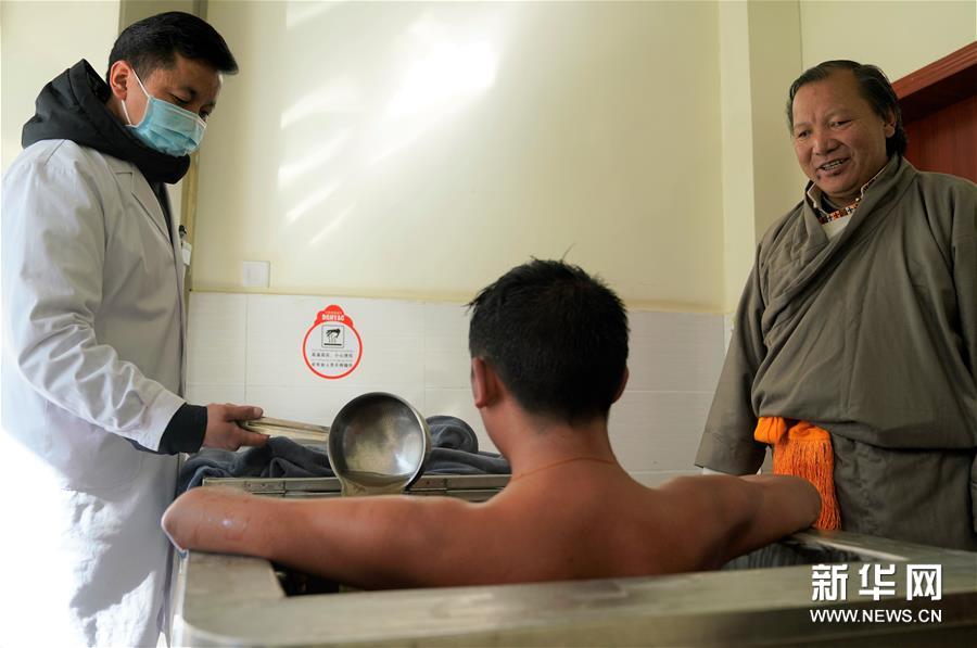 藏医药浴国家级非遗传承人明珠(右)在西藏山南市藏医院药浴中心询问病人的治疗情况(2018年11月23日摄)。 11月28日,正在毛里求斯首都路易港举行的联合国教科文组织保护非物质文化遗产政府间委员会第13届常会通过审议,批准中国申报的“藏医药浴法”列入联合国教科文组织人类非物质文化遗产代表作名录。 新华社记者普布扎西摄