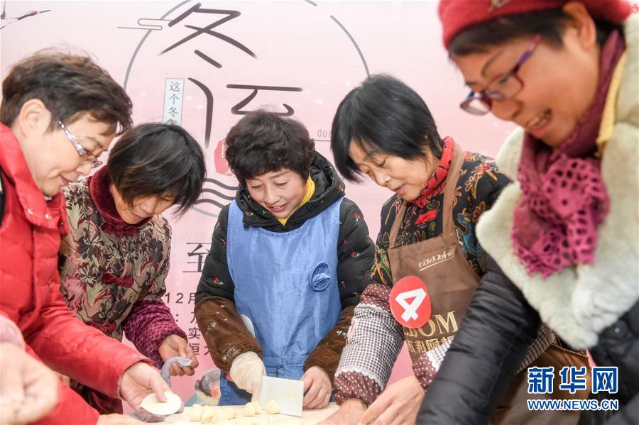 12月19日,合肥市云华社区居民一起包饺子迎冬至。
