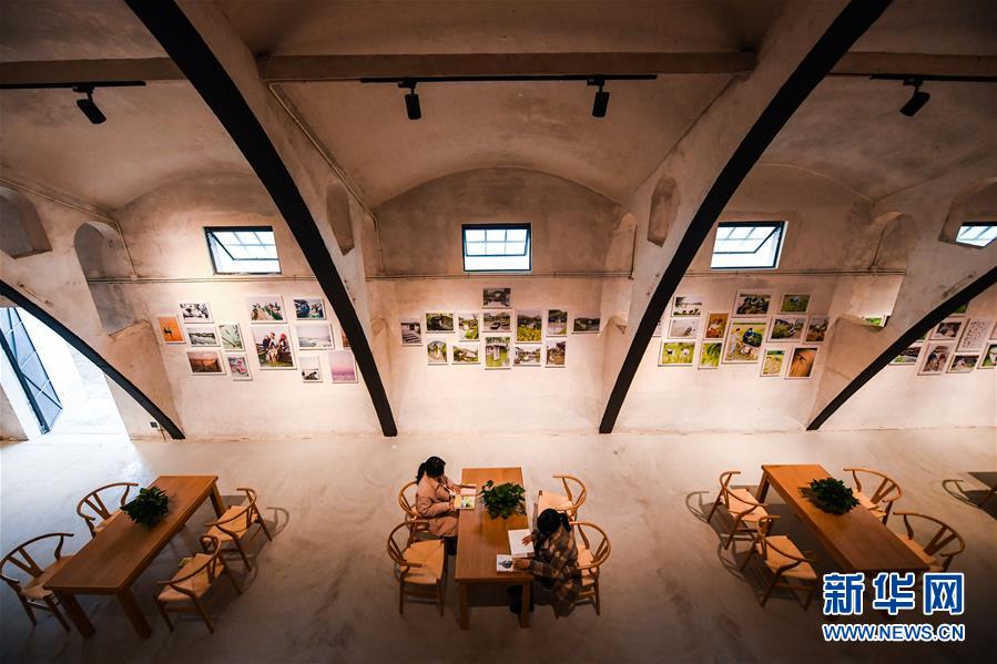 12月20日,村民在旧粮仓改建的“漾西书吧”内看书。