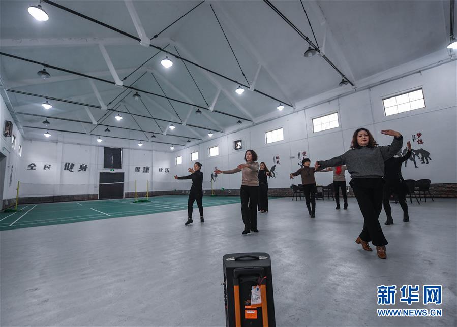 12月20日,村民们在旧粮仓改建的室内体育馆内排练广场舞。 新华社记者 徐昱 摄
