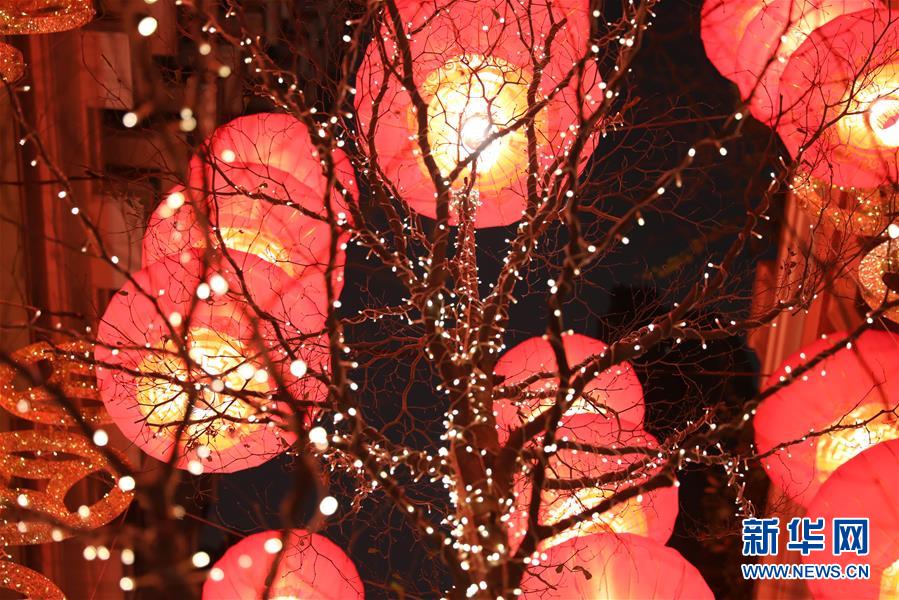香港街头火红的灯笼(2月17日摄)。 除夕过,元宵近,香港街头多灯河。游客夜乐游,沉浸吉祥红。 新华社记者 吴晓初 摄