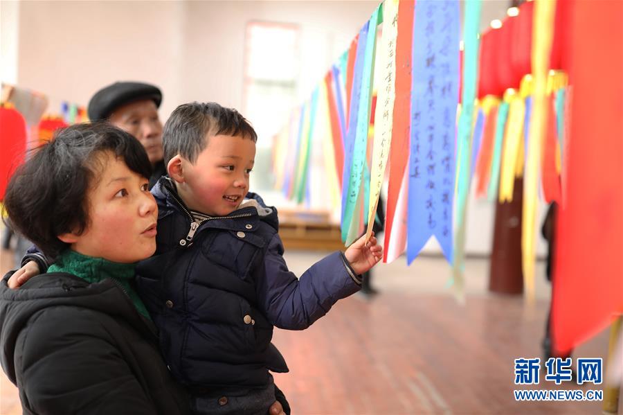 2月16日,浙江省义乌市下骆宅村村民在猜灯谜。 元宵节将至,人们走出家门,赏灯猜谜,喜迎佳节。 新华社发(龚献明 摄)