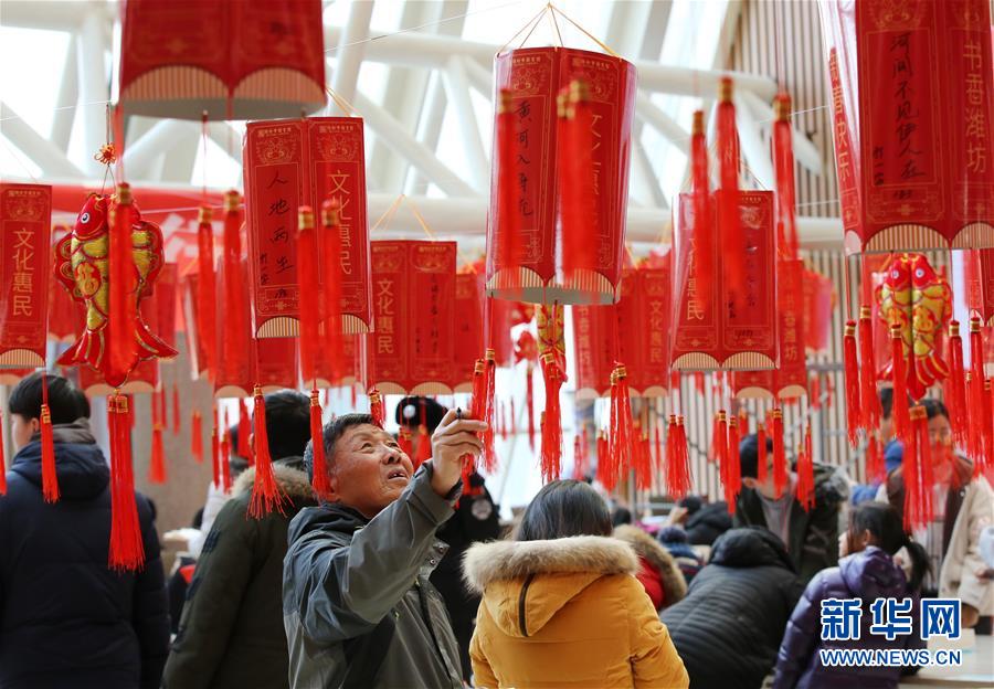 2月17日,市民在山东省潍坊市图书馆内猜灯谜。 元宵节将至,人们走出家门,赏灯猜谜,喜迎佳节。 新华社发(张驰 摄)