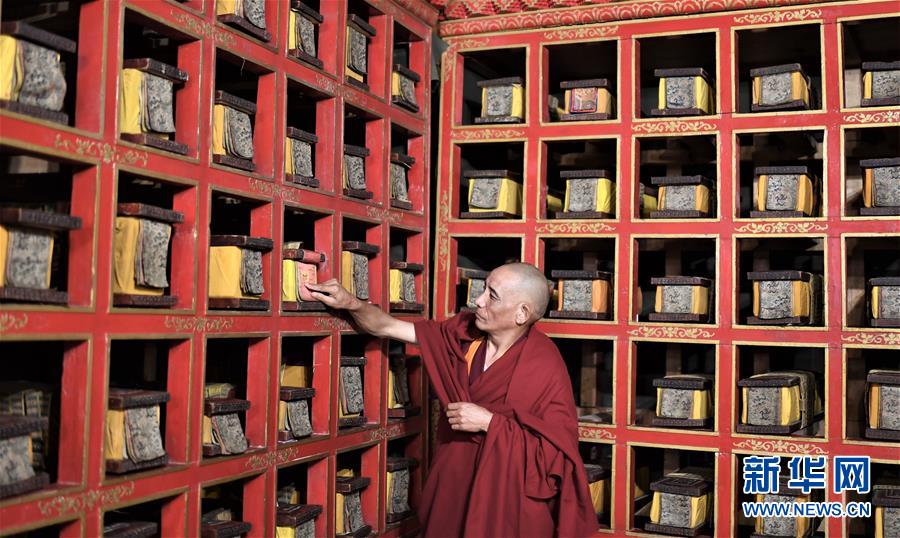 布达拉宫僧人在整理文献(2018年11月15日摄)。 新华社记者 普布扎西摄