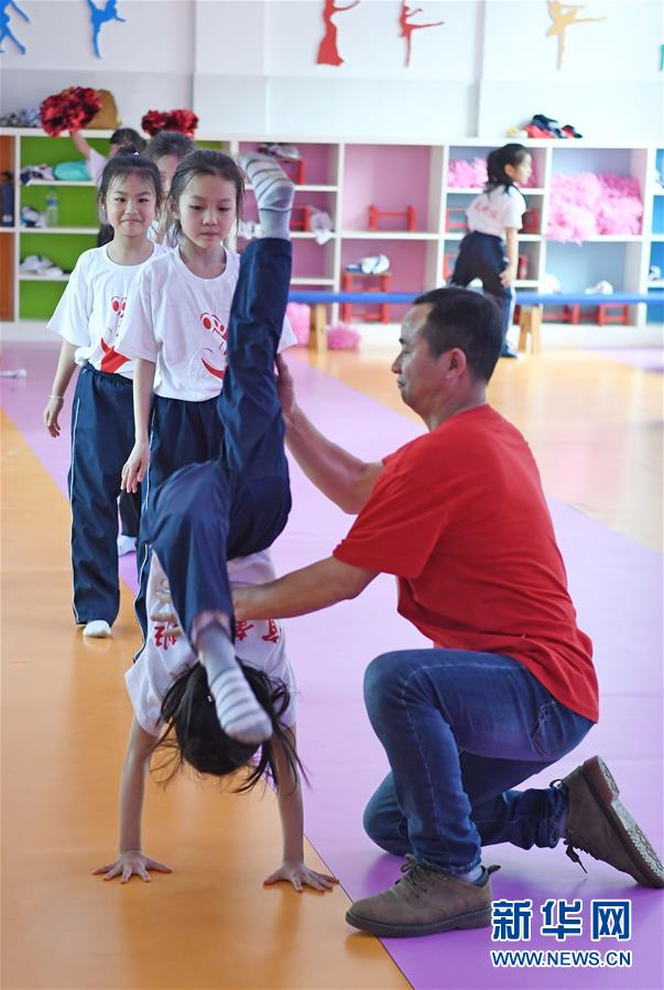 4月24日,宜黄县水北新区小学学生在老师(右一)指导下练习宜黄戏基本功。 新华社记者 万象 摄
