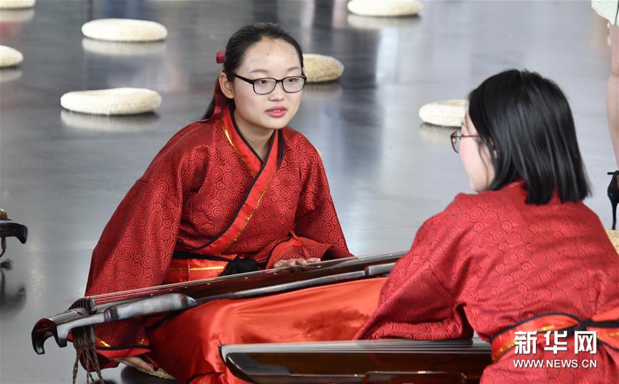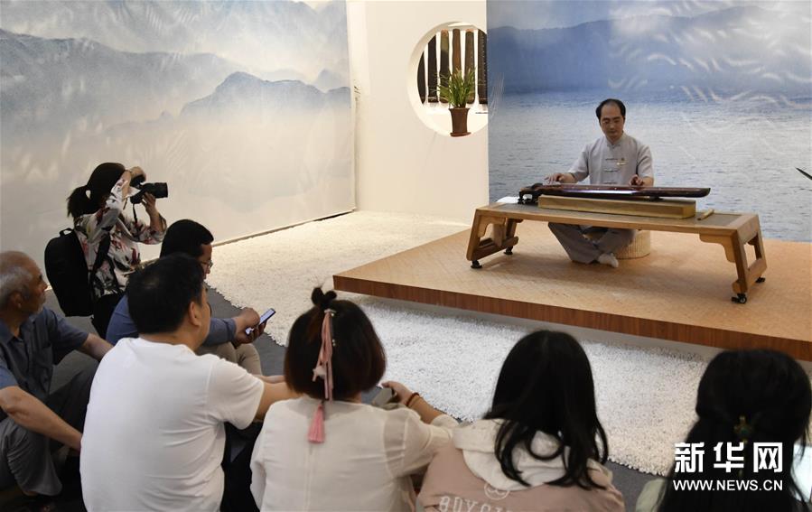 5月25日,古琴演奏者吴寒在为观众演奏古琴。新华社记者李欣摄