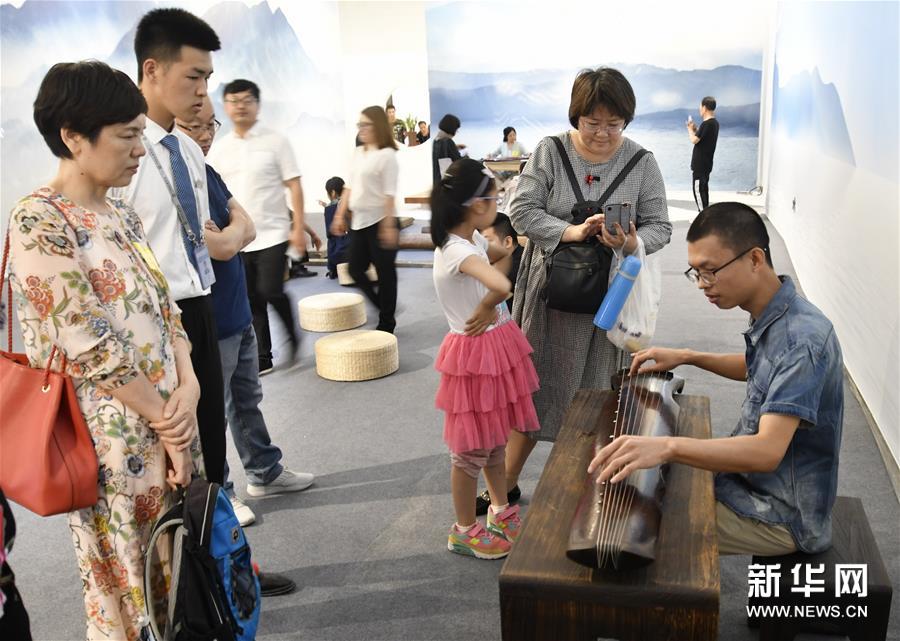 2019年5月25日,游客来到位于北京的中国园林博物馆,参观中国古琴文化展览。展览展出了多张珍贵古琴并举行了多人古琴合奏、古琴名家演奏和市民游客体验活动。 新华社记者李欣摄