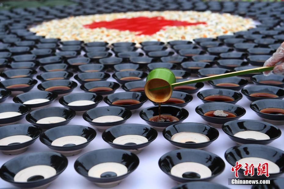 6月2日,端午节前夕,杭州宋城景区准备了一个直径8米、由黄鱼、黄瓜、黄鳝、咸鸭蛋、雄黄酒组成的“五黄”拼盘,让来自全国各地的游客免费品尝,提前体验江南特有的传统端午习俗。景区负责人介绍,端午小长假期间,游客在杭州宋城可以品尝“五黄”,免费体验包粽子、做香包等传统习俗,过一个传统的端午节。 杨晨 摄