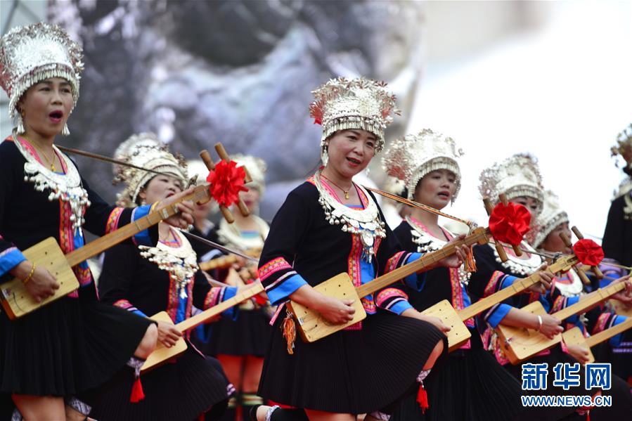 6月17日,演员在广西龙胜各族自治县龙脊梯田文化节上弹唱琵琶歌。新华社发(潘志祥 摄)