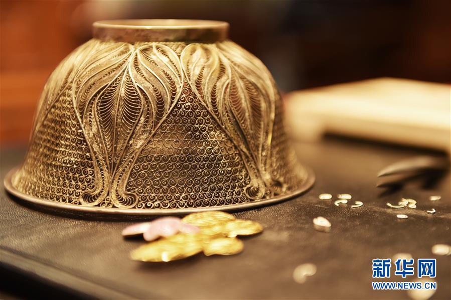 花丝镶嵌工艺制成的银碗(12月17日摄)。 新华社发(陈钟昊 摄)