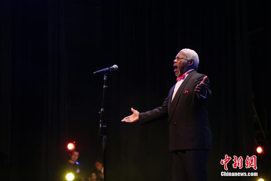 图为休斯敦男中音歌唱家Dorceal Duckens参加“春晚”,表演歌剧《丑角》选段。中新社记者 曾静宁 摄