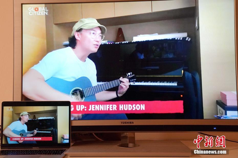 北京时间4月19日凌晨2点至10点 ,世界卫生组织与国际公益组织“全球公民运动”共同举办“同一个世界团结在家”特别慈善音乐会,演出以在线直播的形式举行,全球多国巨星以各种形式参与。图为当地时间4月18日晚在德国柏林直播的“同一个世界团结在家”,中国香港歌手陈奕迅在演唱中。中新社记者 彭大伟 摄