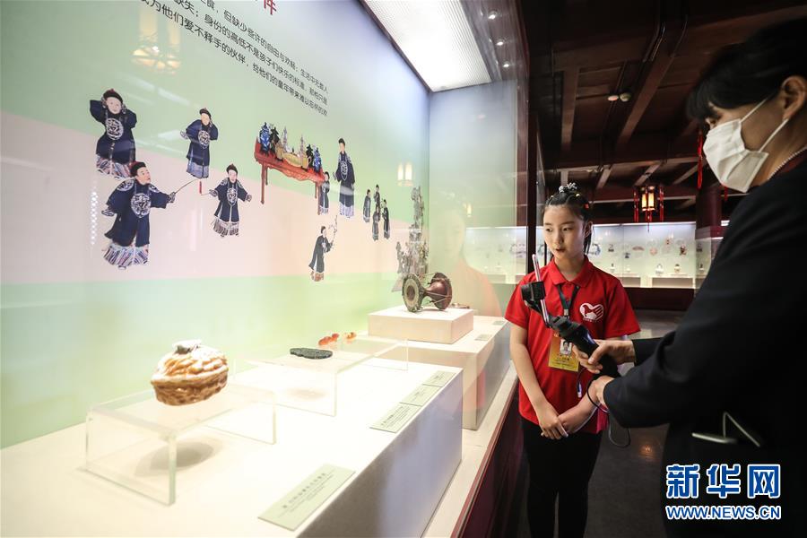 6月1日,小志愿者于冰清在沈阳故宫博物馆内通过直播向观众讲解“古趣童心——清宫文物中的儿童世界”展览。 当日是“六一”国际儿童节,沈阳故宫博物馆的小志愿者利用网络直播的形式,带领小朋友“云”逛沈阳故宫博物馆,并向小朋友们详细讲解正在馆内展出的“古趣童心——清宫文物中的儿童世界”展览。 新华社记者 潘昱龙 摄