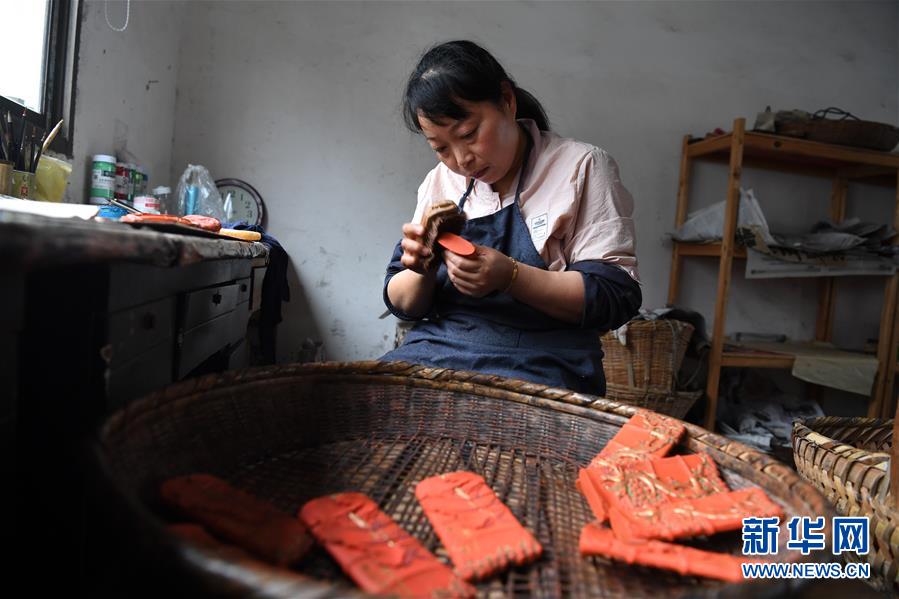 5月20日,安徽歙县“项氏徽墨”的工人为墨打蜡。新华社记者 刘军喜 摄