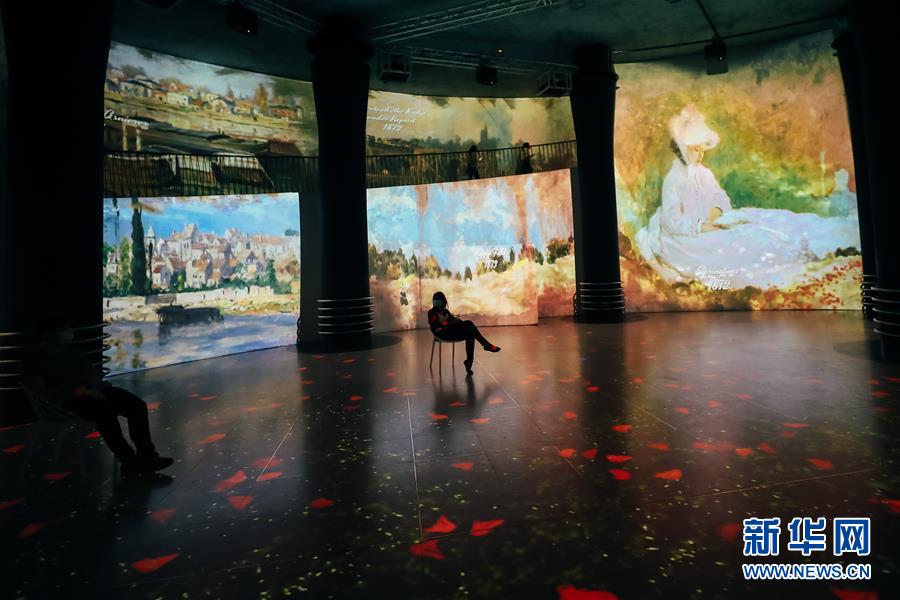 6月10日,人们在比利时布鲁塞尔参观“沉浸式莫奈艺术展”。 布鲁塞尔举办的“沉浸式莫奈艺术展”运用声光电等方式展现法国画家莫奈的作品,让人们“身临其境”感受这位印象派大师的画作。展览因疫情关闭近两个月后于5月18日重新开放,将持续至9月6日,目前人们观展时需佩戴口罩,并保持社交距离。 新华社记者张铖摄