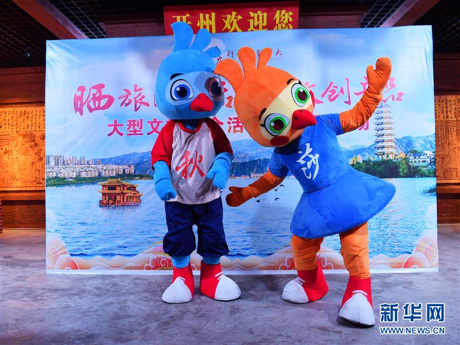 这是6月11日在“双晒”活动现场拍摄的旅游形象大使——秋秋和莎莎。 当日,第二季重庆“晒旅游精品·晒文创产品”大型文旅推介活动在重庆市开州区汉丰湖畔拉开序幕。在近半年时间内,重庆各区县将通过网络直播、线下营销等形式,轮流推介重庆各地的文化旅游精品和文创产品。 新华社发(刘康 摄)