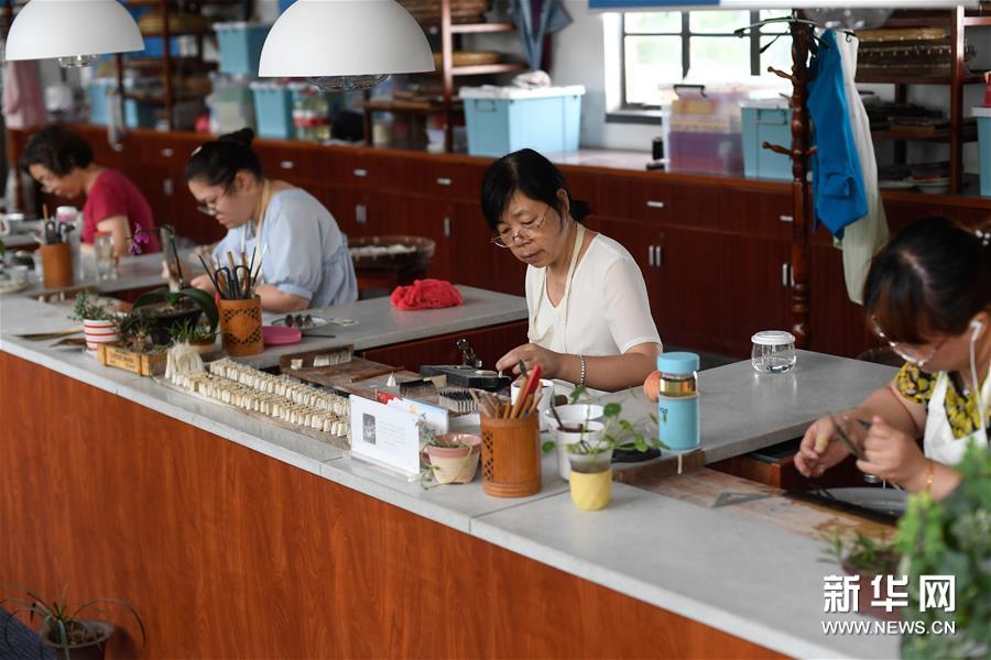 6月17日,湖州市善琏湖笔厂的技师在水盆车间作业。新华社记者黄宗治摄