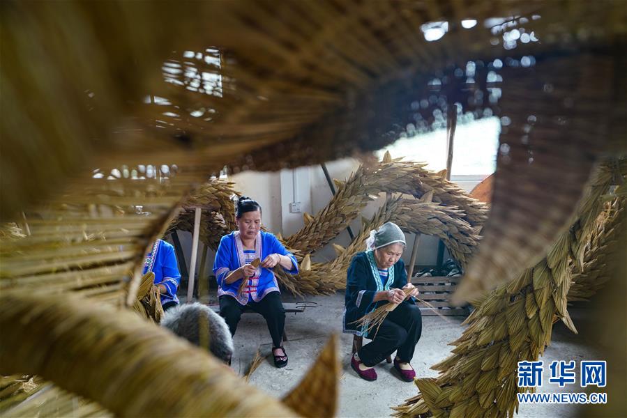 在广西龙胜各族自治县平等镇广南侗寨,村民在编织草龙(6月9日摄)。 端午节临近,在广西龙胜各族自治县平等镇广南侗寨,侗族同胞赶制草龙迎接传统佳节。编织草龙是当地侗族一项独特的民间技艺,每逢重大节庆,侗族同胞都有舞草龙祈福的习俗。草龙以稻草为主要材料,辅以竹木做支架,采用编、插、嵌、剔、镂等十多种工艺,整条草龙用100多斤、数万根稻草编成,做工精细,惟妙惟肖。 新华社发(黄勇丹 摄)