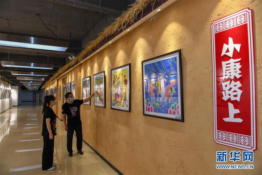 6月25日,在梨树县孤家子镇,农民画传承人钱洪满(右)和女儿钱璐研究农民画技法。 新华社记者 张楠 摄