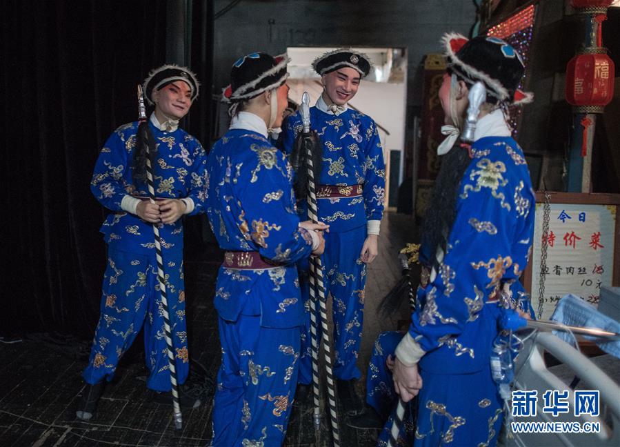 6月26日,在武汉市人民剧院,演员们在登台前准备。 当日,武汉市中心7家剧场恢复开放,各大文艺院团恢复线下演出,市民再次坐在剧场内观看“戏码头”上群星云集、百戏荟萃。 新华社记者 肖艺九 摄