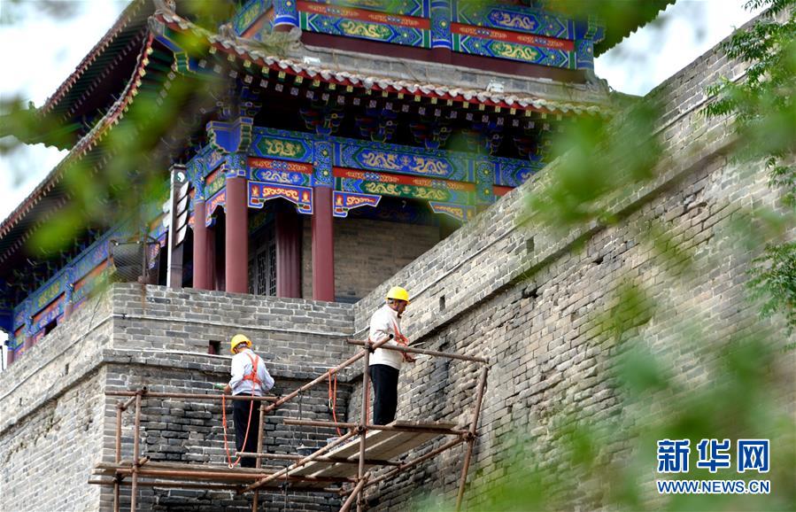 7月2日,工作人员在永年广府古城修缮城墙。 经国家文物局和河北省文物局批准,河北永年广府古城修缮工程已全面启动。在文物专家全程参与下,按照“不改变文物原状”原则进行修缮,预计2021年4月底完工。永年广府古城拥有华北地区保存最完整的古城墙,现为全国重点文物保护单位。 新华社记者 王晓 摄
