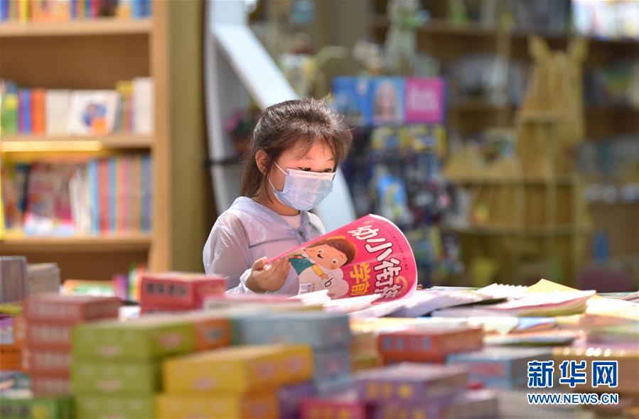 7月5日,一名小朋友在河北省定州市新华书店阅读图书。 近日,河北省定州市新华书店在做好疫情防控的前提下,开展“乐享图书嘉年华”系列活动,通过举办图书联展、亲子阅读、少儿读物推介等活动,吸引少年儿童走进图书馆,感受书香陪伴的夏天。 新华社记者 朱旭东 摄