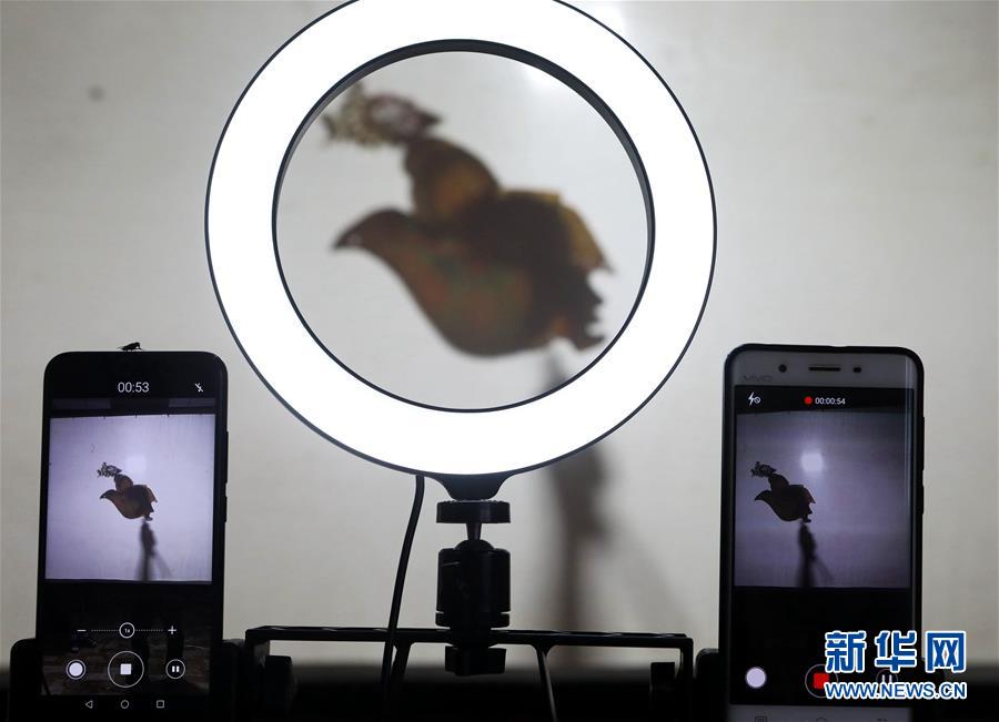 7月9日,河北省邯郸市曲周县皮影戏剧团演员在进行“云端”表演。 当日,河北省邯郸市曲周县举办非遗展演“云端”播系列活动,组织四股弦、皮影戏等非遗项目利用视频直播、多媒体录播等方式进行线上展演,为观众打造一场“云端”文化盛宴。 新华社记者 王晓 摄