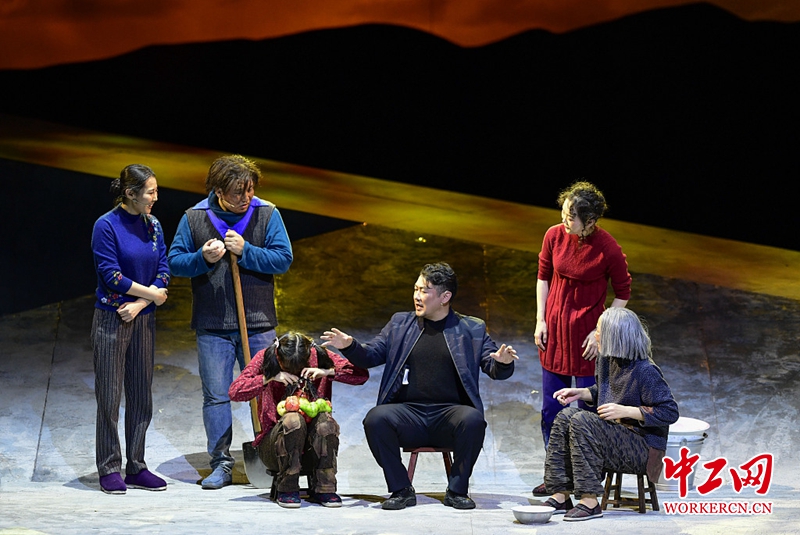 2020年7月13日,内蒙古自治区艺术院团首次“草原文艺为民演出季”在位于呼和浩特的乌兰恰特大剧院拉开帷幕。首场演出的话剧《红手印》由内蒙古民族艺术剧院乌力格尔蒙古剧团排演,讲述了扶贫干部带领村民走上产业脱贫道路的真实感人故事。图片作者:王正/视觉中国