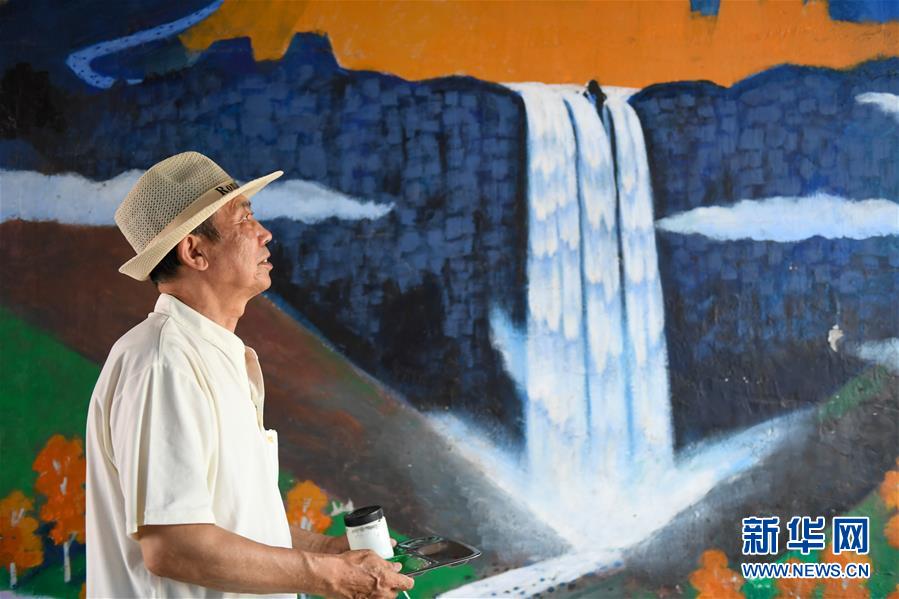 7月18日,吴吉人从自己作画的墙壁前走过。 72岁的吴吉人是吉林省吉林市船营区北极街道致和南社区的居民。曾从事美术工作的他,退休后仍每天坚持在家练习画画。2015年末,社区开始整治墙壁上的野广告,吴吉人主动担任志愿者,刷掉影响美观的广告,画上了自己创作的墙壁画。如今,他已创作10多幅墙壁画,共百余平方米。“我想用我的画让城市变得更美丽。”吴吉人说。 新华社发(颜麟蕴摄)