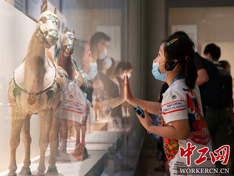 2020年7月19日,暑假期间,许多家长带着孩子走进南京博物院参观各类展览,让孩子们在游览中了解中国传统文化,感受历史的魅力,丰富假期生活。