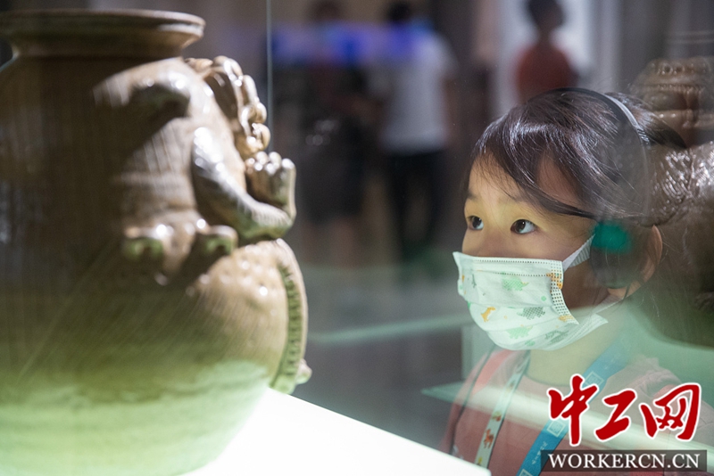 2020年7月19日,小朋友在南京博物院历史馆参观。图片来源:视觉中国