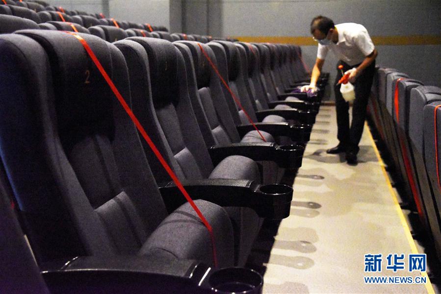 2020年7月20日,济南新世纪电影城阳光100店将观影厅的座位进行分隔,实现观众隔位就座。 新华社记者 王凯 摄