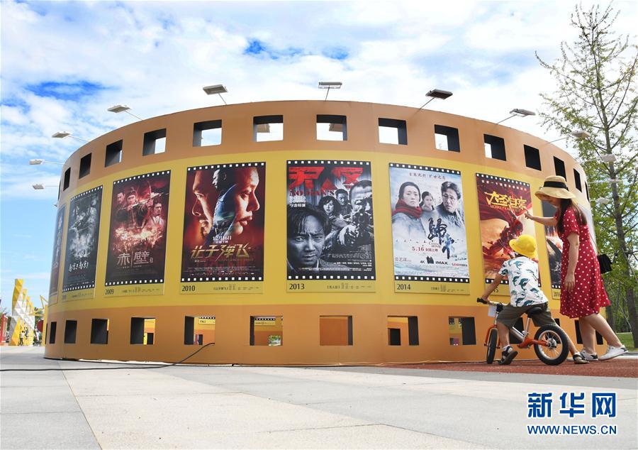 2019年8月25日,一对母子在电影海报展区参观。8月24日,“我和我的祖国”庆祝新中国成立70周年国产优秀电影海报展在青岛西海岸新区启动,百余幅电影海报与公众见面。 新华社记者 李紫恒 摄