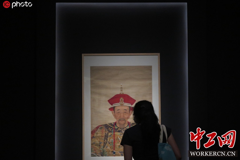 2020年7月19日,北京,国家博物馆的“妙合神形——中国国家博物馆藏明清肖像画展”现场。7月15日起,“妙合神形——中国国家博物馆藏明清肖像画展”在北京对公众展出。此次展览展示了50余幅明清肖像画,观众借此既可略窥中国国家博物馆馆藏肖像画特色,亦可了解明清时期肖像画的嬗变与演进历程。 图片来源:松凡/IC photo