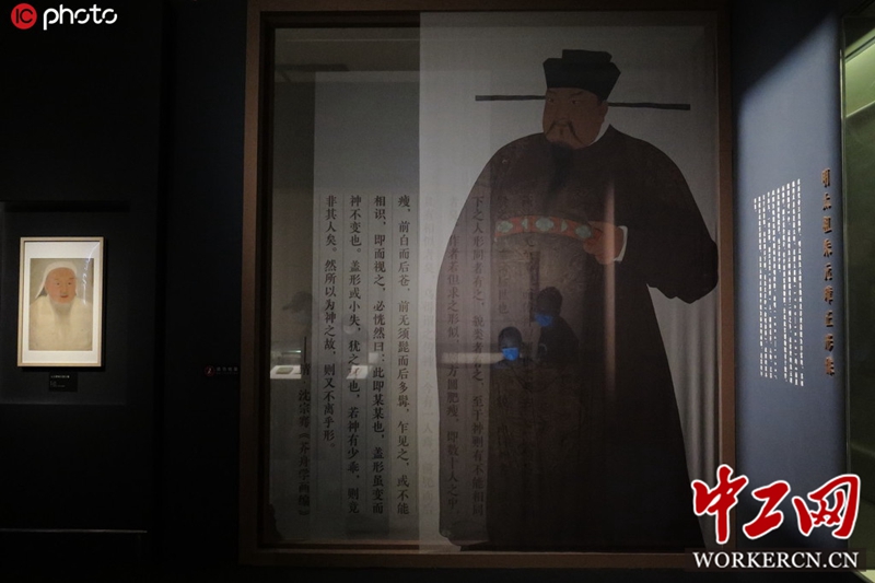 2020年7月19日,北京,国家博物馆的“妙合神形——中国国家博物馆藏明清肖像画展”现场。7月15日起,“妙合神形——中国国家博物馆藏明清肖像画展”在北京对公众展出。此次展览展示了50余幅明清肖像画,观众借此既可略窥中国国家博物馆馆藏肖像画特色,亦可了解明清时期肖像画的嬗变与演进历程。 图片来源:松凡/IC photo