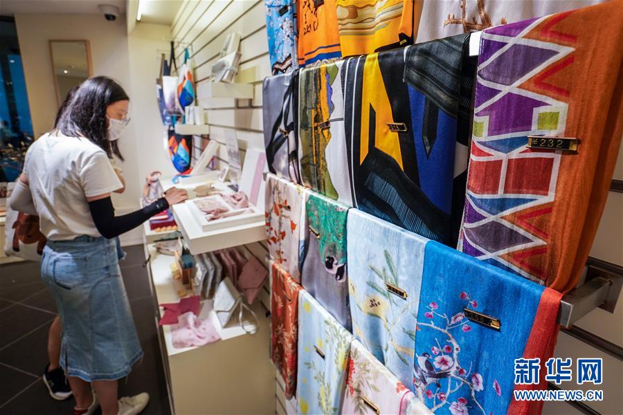 7月24日,观众在苏州博物馆内选购文创产品。 近日,江苏苏州博物馆迎来众多参观者,人们在这里感受文化、学习知识,丰富暑期生活。 新华社记者 李博 摄