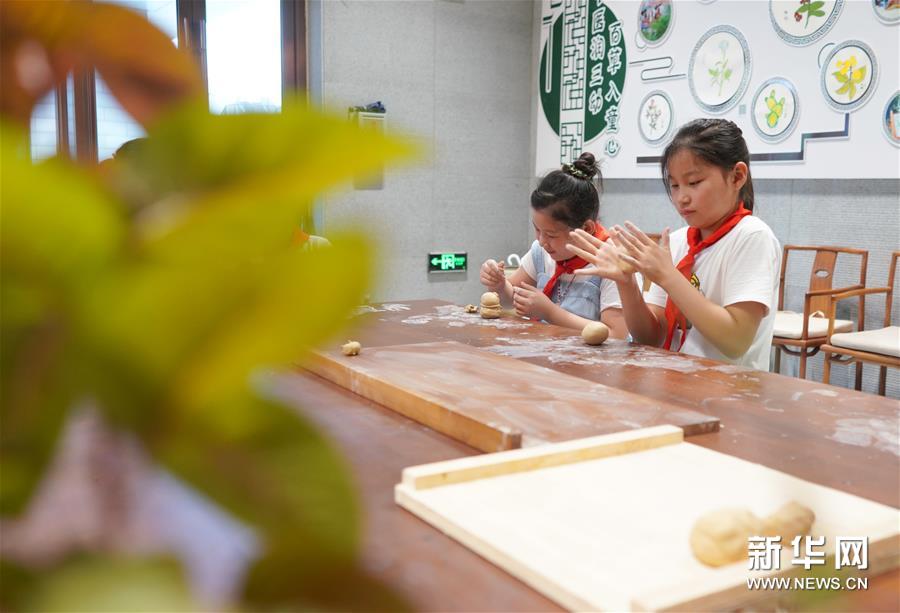 8月6日,在河北省内丘县邢瓷文化体验馆,小学生体验陶瓷捏塑工艺。新华社记者 朱旭东 摄