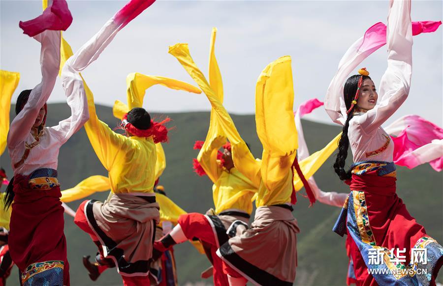 演员们在跳锅庄舞(8月6日摄)。新华社记者 江宏景 摄