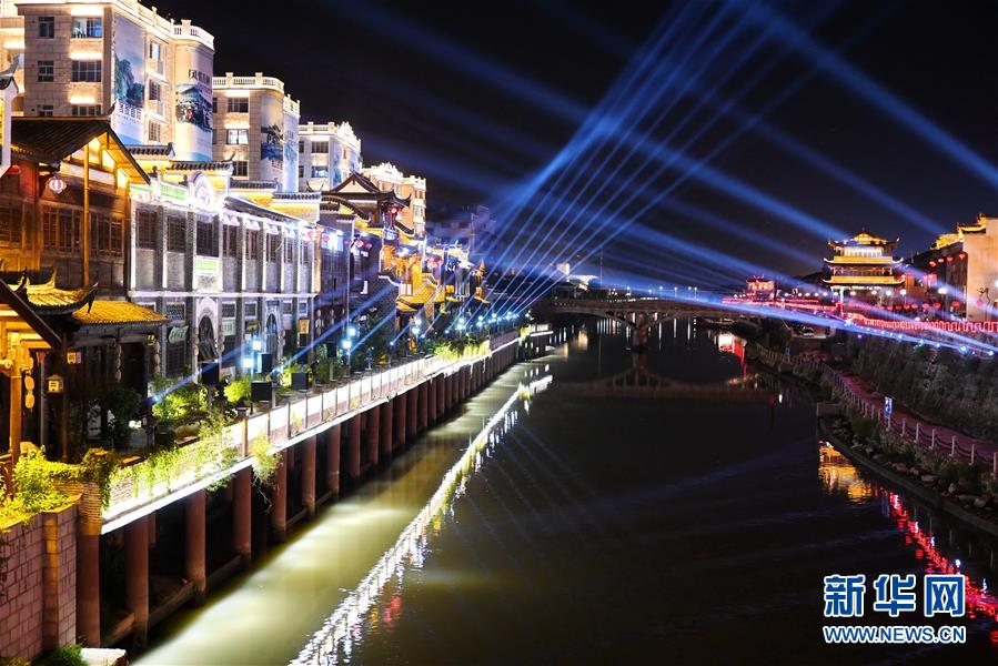 8月20日拍摄的长汀县汀州镇汀江夜景。 福建长汀是古代汀州府所在地,是国家历史文化名城。近年来,长汀县按照古迹保护、风貌保存、古韵留存原则,保持历史街区和古建筑的风貌,让千年古城焕发新活力。 新华社记者 林善传 摄