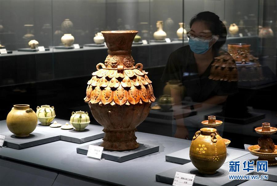 8月25日,参观者在“大河上下——黄河流域陶瓷精品展”上观看展品。 当日,“大河上下——黄河流域陶瓷精品展”在郑州大象陶瓷博物馆开展。本次展览共分为先秦时期、汉唐时期和宋元明清时期的黄河流域陶瓷三个部分,通过100余件展品讲述“黄河故事”。 新华社记者 李安 摄