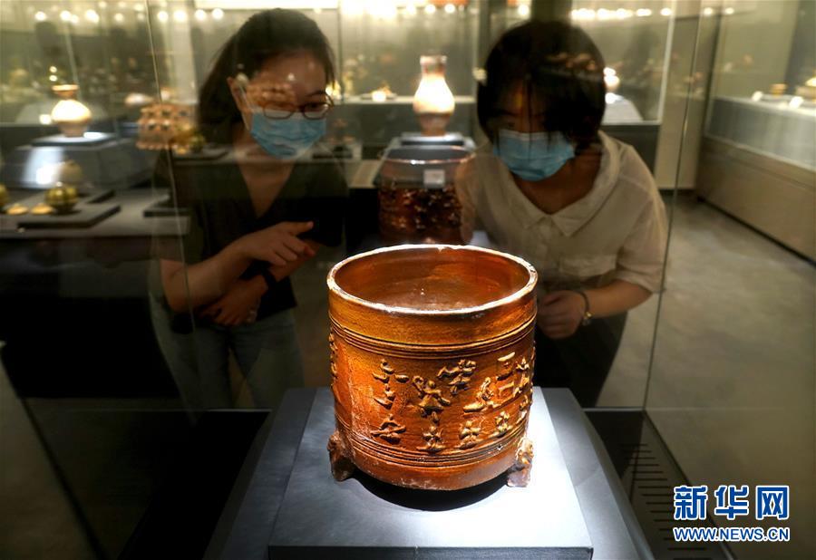 8月25日,参观者在“大河上下——黄河流域陶瓷精品展”上观看展品。 当日,“大河上下——黄河流域陶瓷精品展”在郑州大象陶瓷博物馆开展。本次展览共分为先秦时期、汉唐时期和宋元明清时期的黄河流域陶瓷三个部分,通过100余件展品讲述“黄河故事”。 新华社记者 李安 摄